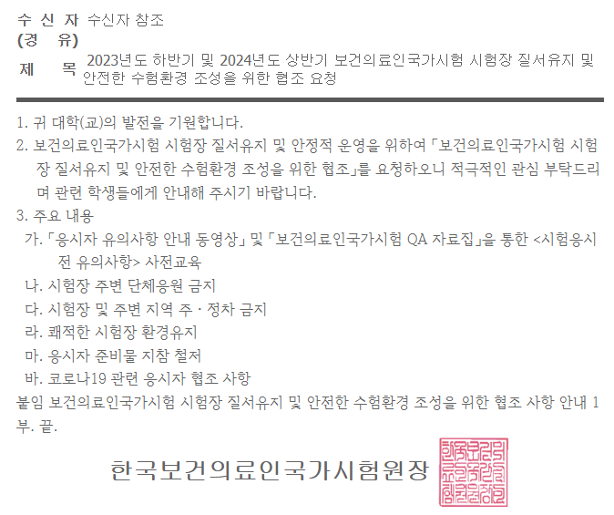 국가고시 관련 안내